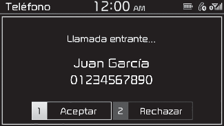 Cuando entra una llamada, una ventana emergente de notificación de la llamada entrante aparece en la pantalla del sistema.