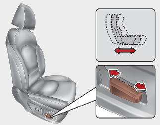 The front seat can be adjusted by using the control switches located on the outside of the seat cushion. Before driving, adjust the seat to the proper position so you can easily control the steering wheel, pedals and switches on the instrument panel.