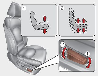 The power seat is driven by an electric motor. Stop operating once the adjustment is completed. Excessive operation may damage the electrical equipment.