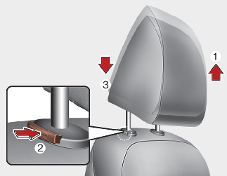 To raise the headrest, pull it up to the desired position (1). To lower the headrest, push and hold the release button (2) and lower the headrest to the desired position (3).