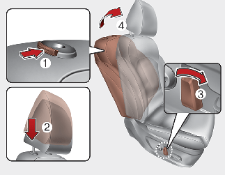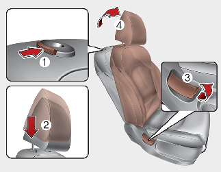 For maximum effectiveness in case of an accident, the headrest should be adjusted so the middle of the headrest is at the same height of the centre of gravity of an occupant's head. Generally, the centre of gravity of most people's head is similar with the height of the top of their eyes. Also, adjust the headrest as close to your head as possible. For this reason, the use of a cushion that holds the body away from the seatback is not recommended.