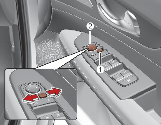 Move the R or L switch (1) to select the right side mirror or the left side mirror.