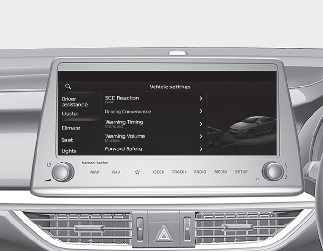 To change the Driver Assistance settings, press the OK button on the steering wheel for more than 1 second when the Driving Assist mode is displayed.