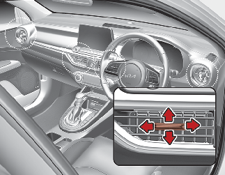 The outlet vents can be opened or closed separately turning the knob right or left. Also, you can adjust the direction of air delivery from these vents moving the knob freely to any directions.
