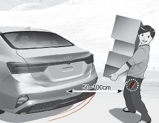 If you are positioned in the detecting area (50 ~100 cm behind the vehicle) carrying a smart key, the hazard warning lights will blink and chime will sound to alert you the smart key has been detected and the trunk will open.