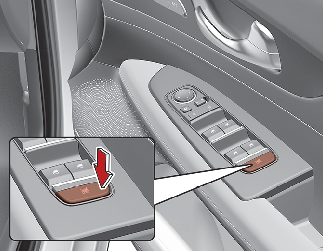 The driver can disable the power window switches on the rear passengers' doors by pressing the power window lock button to the lock position (pressed).