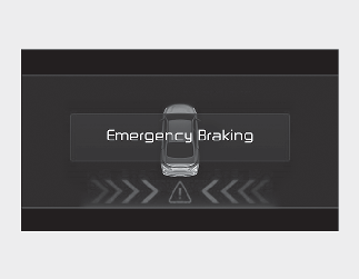 When the vehicle is stopped due to emergency braking, the 'Drive carefully' warning message will appear on the cluster.