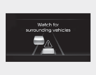 In the following situation, the 'Watch for surrounding vehicles' warning message will appear on the cluster, and an audible warning will sound to warn the driver of road conditions ahead.