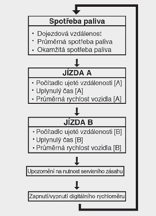 Rozsah spotřeby paliva: 0~99,9 l/100 km, km/l nebo mil/galon