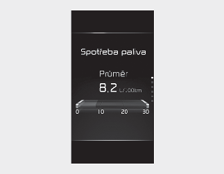 Režim denních kilometrů zobrazuje informace, související s jízdními parametry, včetně spotřeby paliva, délky jízdy a rychlosti vozidla.