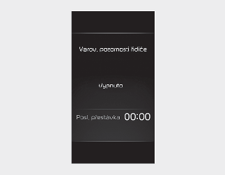 Když řidič resetuje funkci sledování bdělosti řidiče, čas poslední přestávky se nastaví na hodnotu 00:00 a míra bdělosti řidiče se nastaví na hodnotu „High“ (Vysoká).