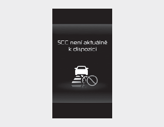 Je-li funkce dočasně deaktivována, zobrazí se na přístrojovém panelu varovná zpráva „Smart Cruise Control canceled“ (Adaptivní tempomat byl deaktivován) nebo „SCC (Smart Cruise Control) canceled“ (Funkce SCC (adaptivní tempomat) byla deaktivována) a zazní zvuková výstraha jako varování pro řidiče.
