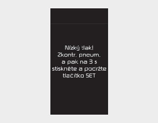 Při dohuštění pneumatik se může stát, že nebudou splněny podmínky pro vypnutí indikátoru nízkého tlaku v pneumatikách. Důvodem je určitá chybová tolerance kompresoru pro huštění pneumatik. Indikátor nízkého tlaku v pneumatikách se vypne, jakmile tlak v pneumatikách překročí doporučený tlak huštění pneumatik.