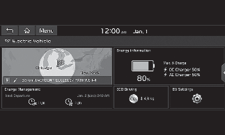 * The image of EV menu screen in this manual may differ from the actual screen depending on the vehicle specification and the version of the Infotainment system software. For more information, please refer to the "Car Infotainment System Quick Reference Guide".