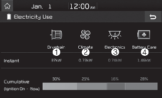You can check the current energy consumption for each system of the vehicle.
