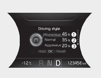 To reset the details, press and hold the OK button when viewing the Driving style.