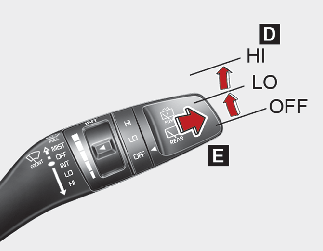 When washing the vehicle, set the wiper switch in the OFF position to stop the auto wiper operation.