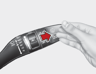 Push the lever away from you to spray rear washer fluid and to run the rear wipers 1~3 cycles.