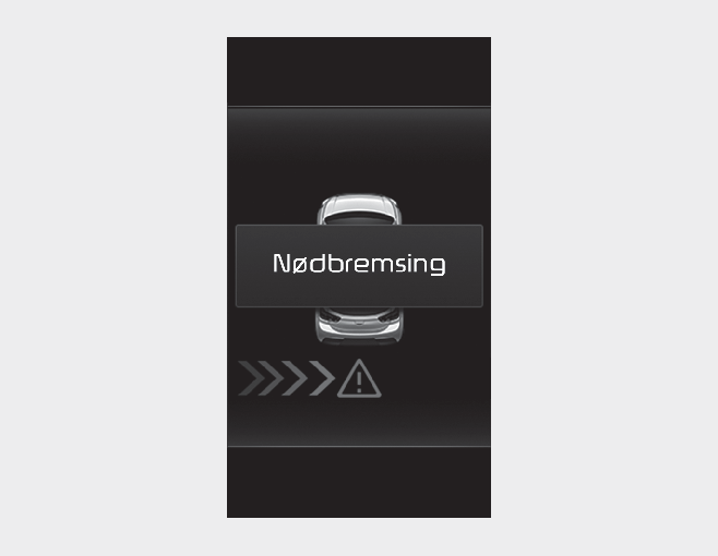 For din egen sikkerhet bør du trå inn bremsepedalen umiddelbart og sjekke omgivelsene.