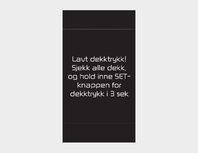 ) tennes når det er lite luft i ett av dekkene. For enkelte typer kan meldingen ovenfor vises på instrumentpanelet.