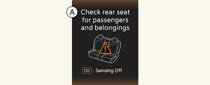 Al abrir la puerta delantera después de abrir y cerrar la puerta trasera y apagar el motor, aparece el mensaje de advertencia "Check rear seats" (revise asientos traseros) en el tablero.
