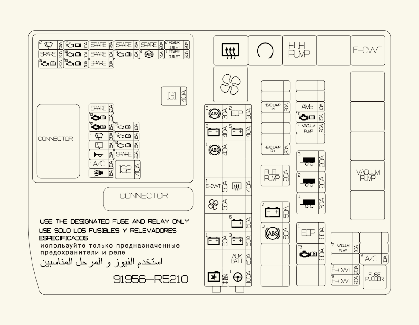 Descripción del panel de fusibles/relés