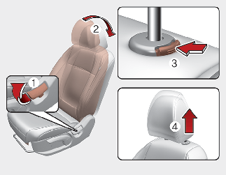 If you recline the seatback towards the front with the headrest and seat cushion raised, the headrest may come in contact with the sun visor or other parts of the vehicle.