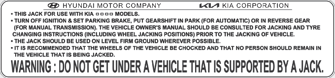 * The actual jack label in the vehicle may differ from the illustration. For more detailed specifications, refer to the label attached to the jack.