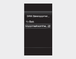 Hvis 'Varsel for uoppmerksom kjøring' er valgt vil funksjonen informere føreren om førerens oppmerksomhetsnivå og vil anbefale å ta en pause når nivået faller under et visst nivå. Når motoren startes på nytt, vil advarselen for varsel for uoppmerksom kjøring alltid slås på.