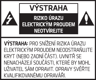 Abyste snížili riziko úrazu elektrickým proudem, neodebírejte kryt nebo zadní část tohoto výrobku. Uvnitř přístroje se nenacházejí žádné součásti, které jsou vyměnitelné nebo vyžadují údržbu. Obraťte se na kvalifikovaného odborného pracovníka.