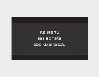 Jestliže otočíte spínačem zapalování do polohy startování bez sešlápnutí pedálu brzdy a spojky, motor nenaskočí a na přístrojovém panelu se zobrazí následující vyskakovací okno.