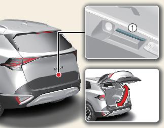 Nyomja meg a külső fogantyú gombot (1) a csomagtérajtó kinyitásához.