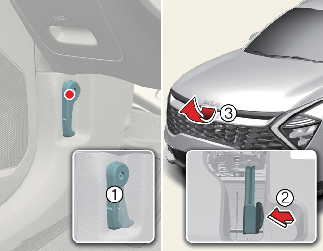 Tolja balra a másodlagos motorháztető-nyitókart (2).