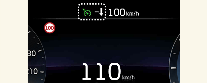 Ha a kijelzett sebességkorlátnál nagyobb sebességgel halad, a piros sebességkorlátozás-jelző villog.