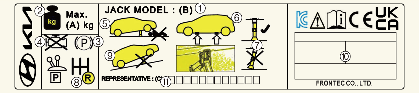 * A gépkocsiban ténylegesen elhelyezett emelőcímke különbözhet az ábrán láthatótól. Bővebb információkért tekintse meg az emelőre ragasztott címkét.