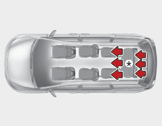 4th row occupants should always remain in the centre of the seat cushion so the occupants' heads are protected by the headrest. If not, the tailgate may hit the occupant's head, which could cause injury.