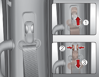 To adjust the height of the seat belt anchor, lower or raise the height adjuster into an appropriate position.