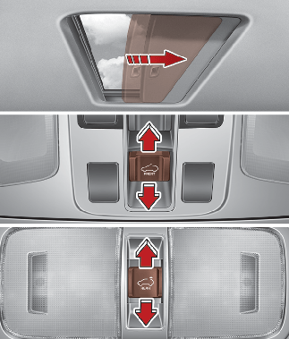 Push the sunroof switch rearward, the sunshade and sunroof glass slide open. Push the sunroof switch forward, only the sunroof glass closes.