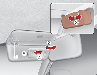 To use the vanity mirror, pull down the visor and slide the mirror cover (4).