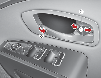 To open a door, pull the door handle (3) outward (for front door).