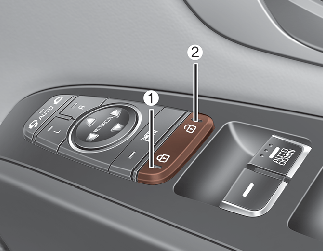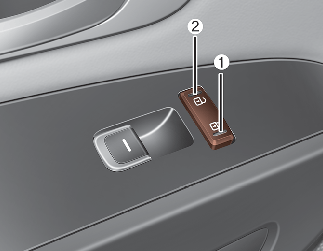 To lock all vehicle doors, press the left portion (1) for driver side of the switch.