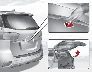 The tailgate swings upward. Make sure no objects or people are near the rear of the vehicle when opening the tailgate.