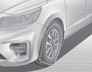 Since the sidewalls of radial tyres are thinner, they can be damaged by mounting some types of snow chains on them. Therefore, the use of snow tyres is recommended instead of snow chains. Do not mount tyre chains on vehicles equipped with aluminium wheels; snow chains may cause damage to the wheels. If snow chains must be used, use wire-type chains with a thickness of less than 12 mm. Damage to your vehicle caused by improper snow chain use is not covered by your vehicle manufacturers warranty.