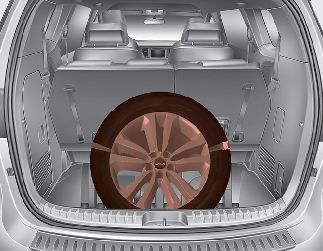 With the flat tyres in the centre of the third row seats, place the outer part of the wheel facing the tailgate.