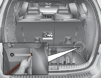 Connect the fixing belt to the striker (A) located at the bottom left/right side of the back of the third row seats.