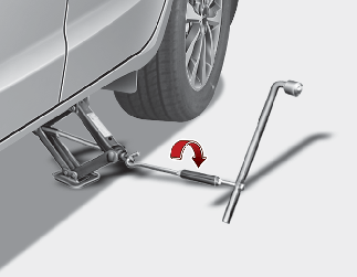 Then position the tool as shown in the drawing and tighten the wheel nuts. Be sure the socket is seated completely over the nut. Do not stand on the tool handle or use an extension pipe over the tool handle. Go around the wheel tightening every other nut until they are all tight. Then doublecheck each nut for tightness. After changing wheels, have the system checked by a professional workshop.