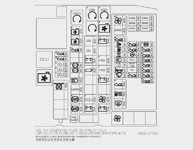 Inside the fuse/relay panel covers, you can find the fuse/relay label describing fuse/relay name and capacity.