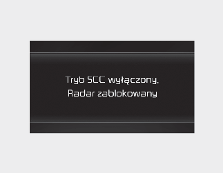 W takiej sytuacji zostanie wyświetlony komunikat ostrzegawczy „Smart Cruise Control disabled. Radar blocked” (Inteligentny tempomat wyłączony. Radar zasłonięty).