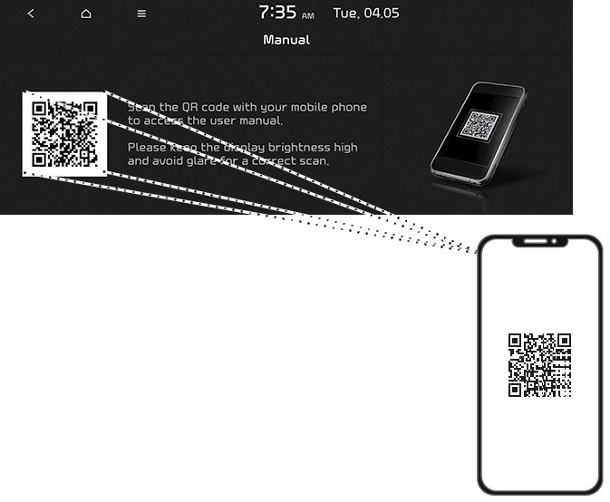 Scanning QR code: Press [SETUP] > [General] > [System info] > [Manual]. Scan the QR code, then tap the notification to go to the web page.