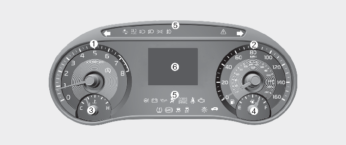 * The actual cluster and contents of the LCD display in the vehicle may differ from the illustration.
